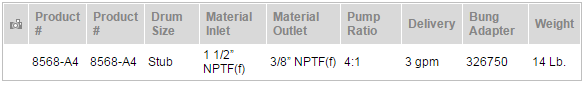 Alemite 標準氣動泵規格:
